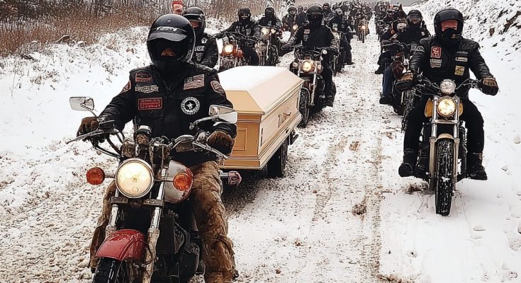 Behind him, riders stood silent in the snow, frost clinging to their leathers, engines ticking in the cold. They weren’t just bikers; they were veterans of Vietnam, Desert Storm, Iraq, and Afghanistan. Men and women who knew what it meant to sacrifice. They weren’t going to turn back.