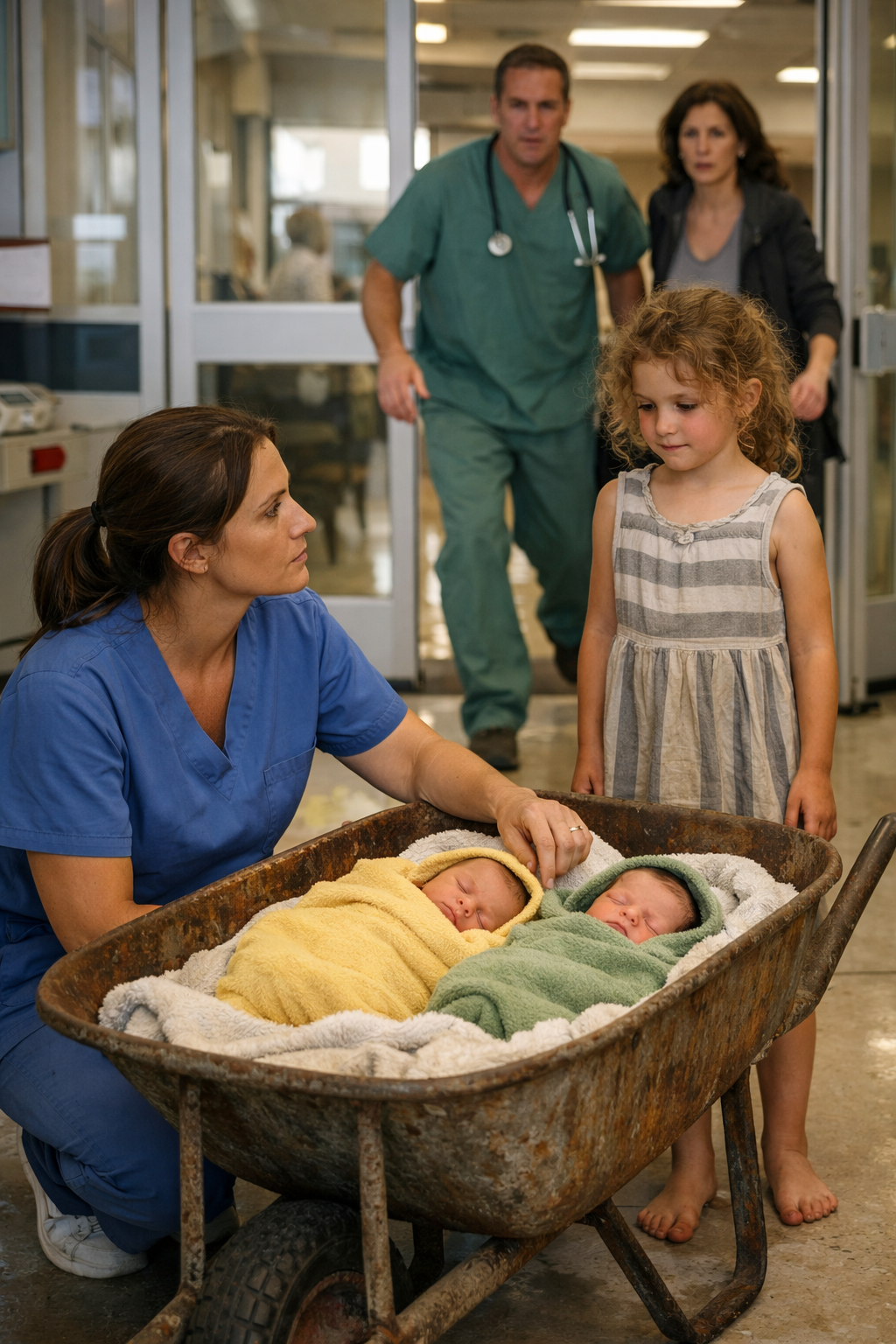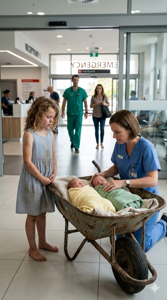 The babies were rushed toward the neonatal intensive care unit while Margaret remained kneeling beside the exhausted child, who still held the empty wheelbarrow as if afraid someone might take it away.