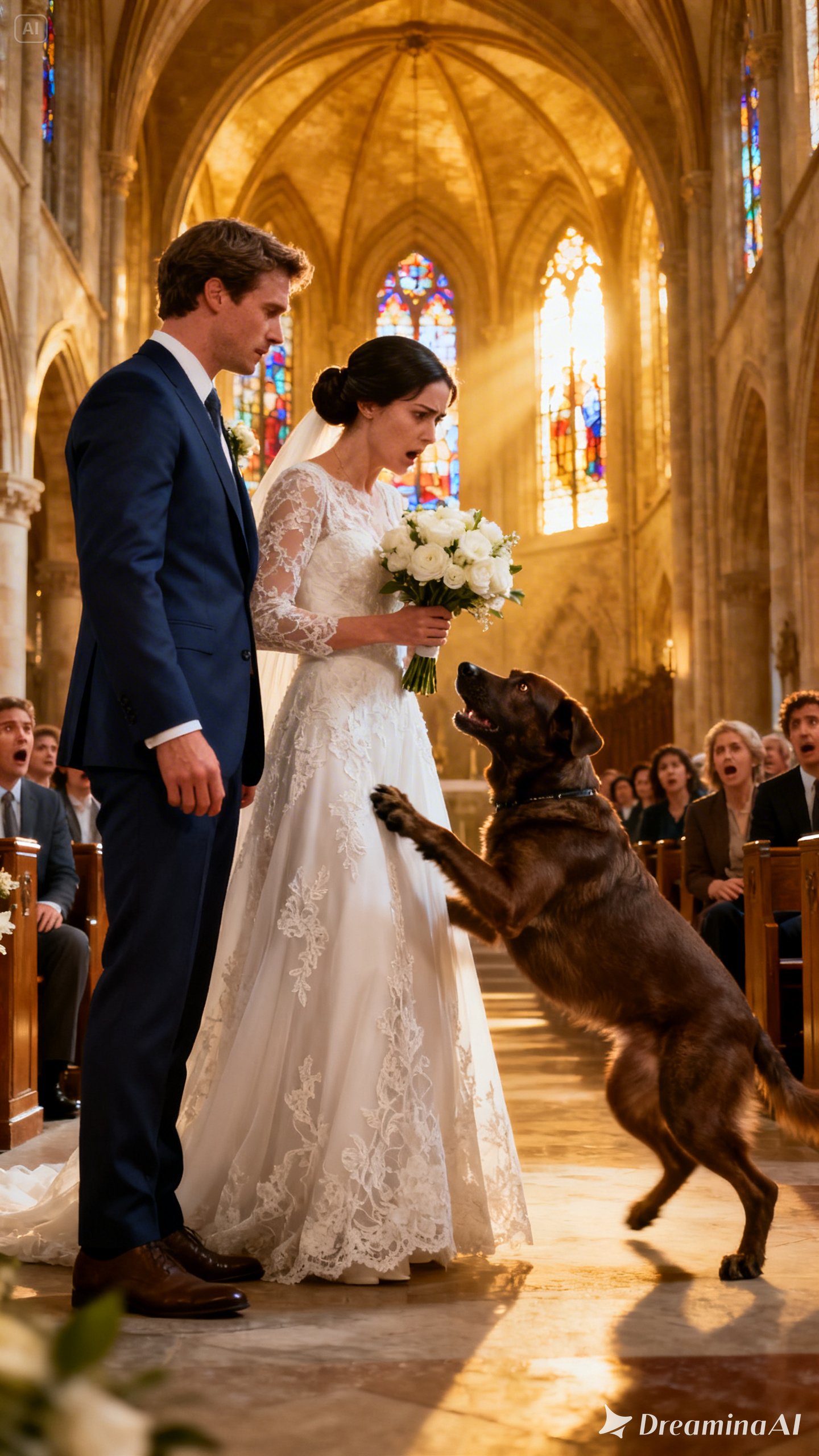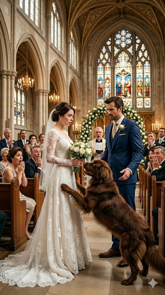 The wedding ceremony came to a halt when a dog ran into the church and caused the bride to step outside.