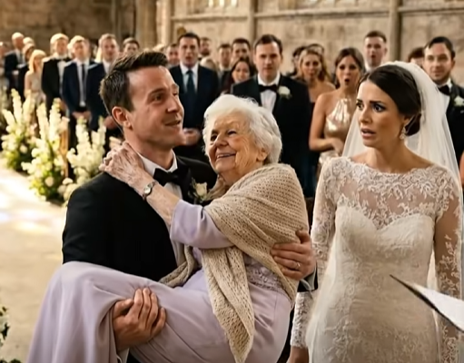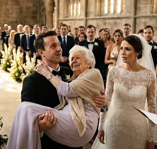 A ripple of confused laughter spread through the cathedral, quickly dying as guests realized this wasn’t a joke. Luis carried Mrs. Elena several steps down the aisle while she smiled—proud, victorious. The room filled with uneasy whispers.