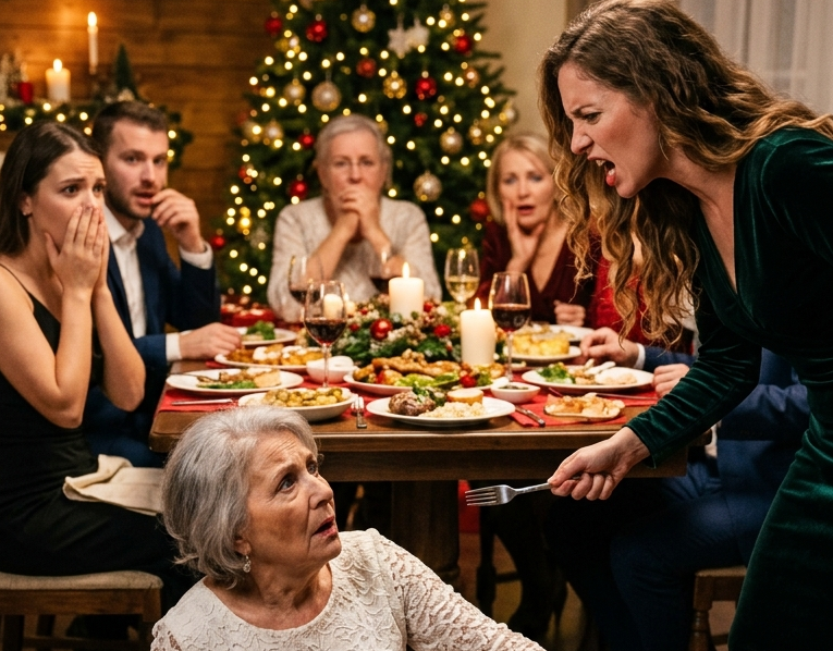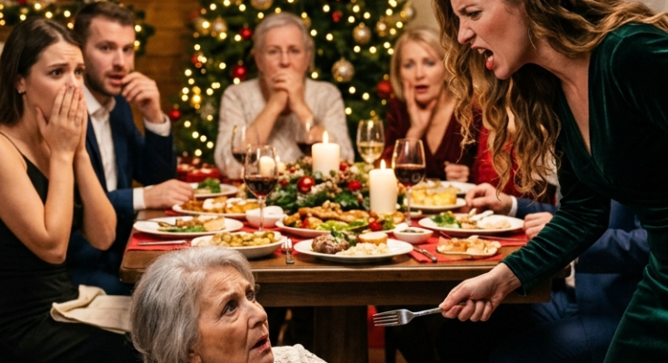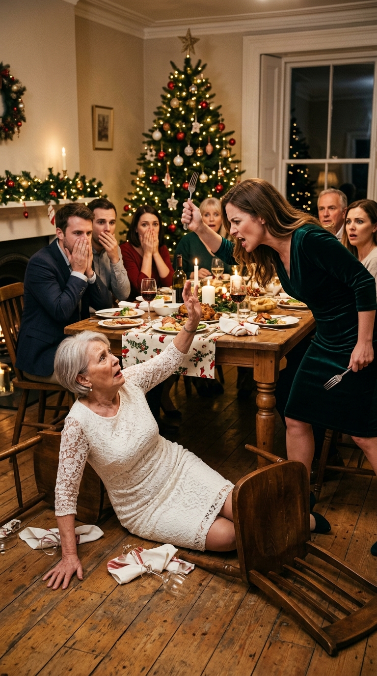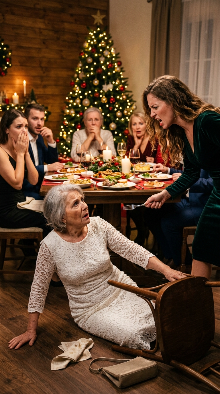 I spent the entire day preparing Christmas dinner for the family. When I finally took a seat beside my husband, his daughter shoved me and snapped, “That seat belongs to my mother.” I swallowed the hurt and waited for my husband to stand up for me—but he only told me not to sit there again. Everyone else kept eating as if nothing had happened. I had given my youth, my effort, my entire life to this family. And in that moment, I understood something clearly: it was time they found out who I really was.