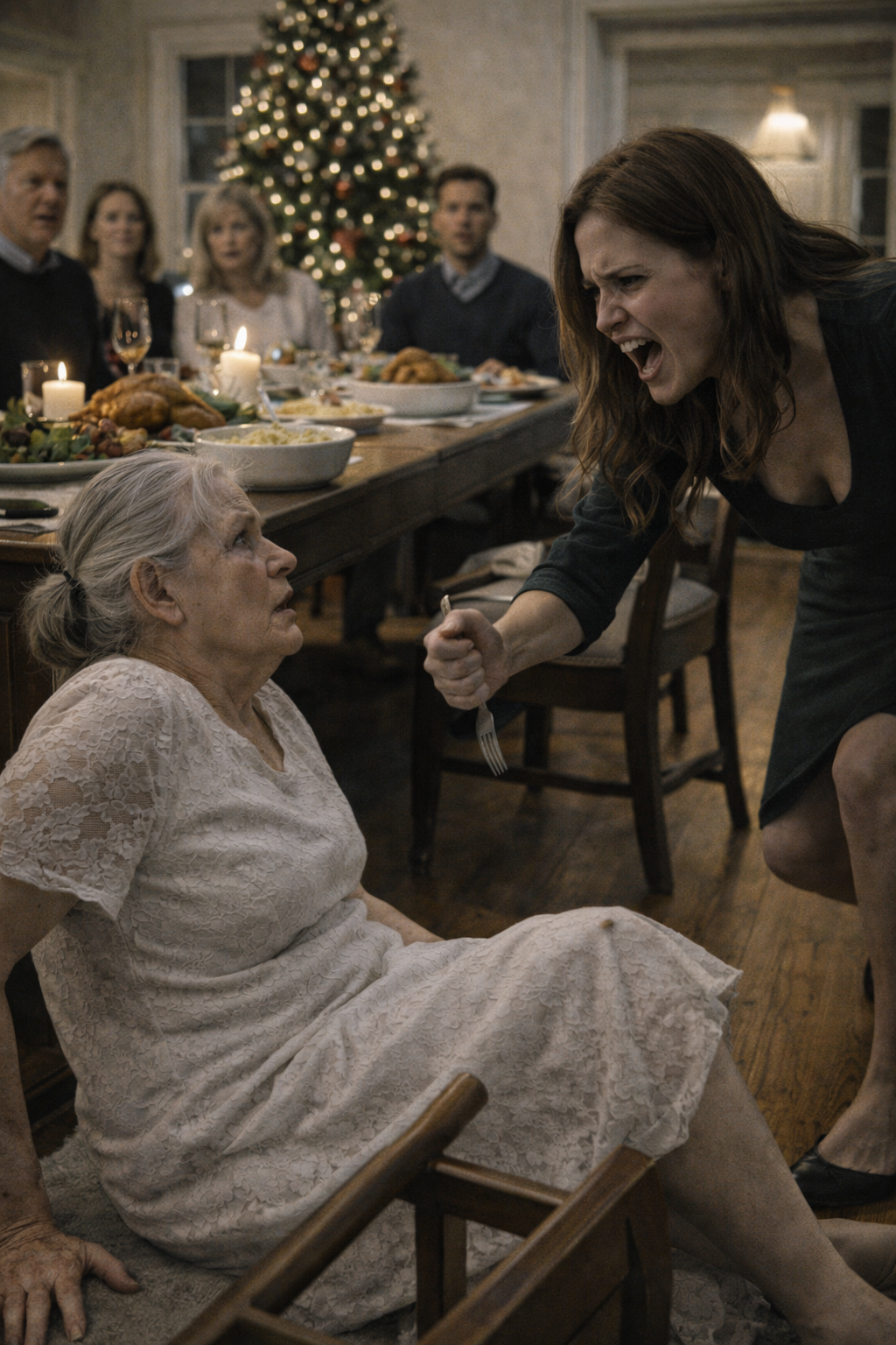 “Not there,” Jessica snapped. She shot up from her seat, and before Elena could react, she shoved her hard. Elena stumbled back, hitting the sideboard. “Don’t you dare. That seat belongs to my mother.”