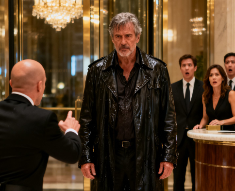 His coat was torn at the shoulder. His trousers were soaked to the knee. Water dripped from his hair, forming a dark ring on the floor. He carried no suitcase, no briefcase—nothing to mark him as belonging anywhere near a place where one night cost more than most earned in a month.