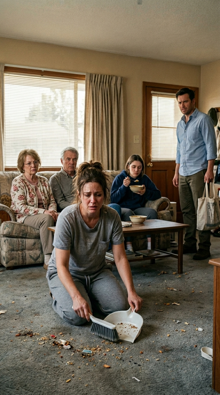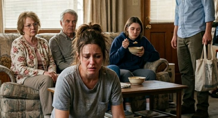 Amanda stood over Emily, who was trying to push herself up from the couch with one hand pressed against her lower back. A half-open box of baby clothes was scattered across the floor. My mother sat stiffly in the armchair, saying nothing. My father stood near the fireplace, staring at the rug like he wanted to disappear.