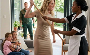I gasped as the scalding cleaning water hit my chest. It soaked my uniform instantly, searing my skin. The heat was unbearable. I staggered back, biting my lip to keep from screaming.