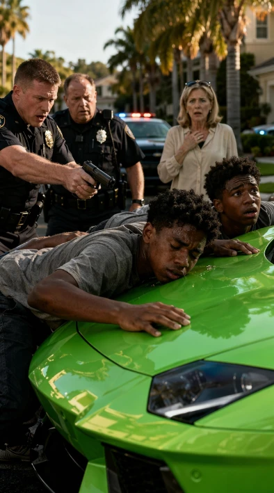 SHE DIALED 911 ON TWO BLACK TEENS FOR “TRYING TO STEAL” A $350,000 LAMBORGHINI IN HER UPSCALE NEIGHBORHOOD—BUT WHEN THE TRUE OWNER SHOWED UP, HER HEART NEARLY STOPPED.