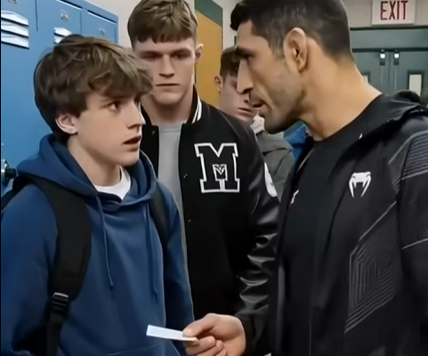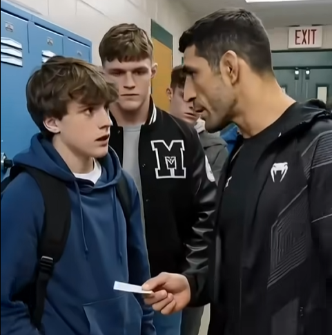 They walked down the hallway together — Leo in his training jacket with the UFC patch, Marco with his hand still slightly on his face, the two hundred students parting the way hallways part when something has just shifted.