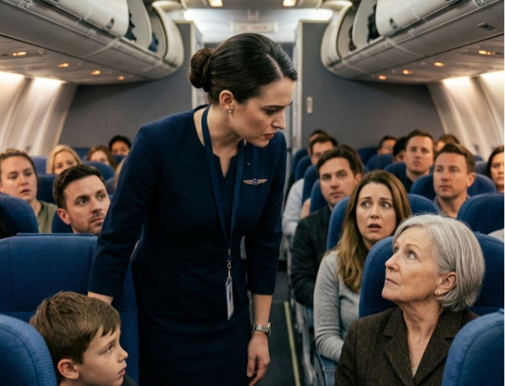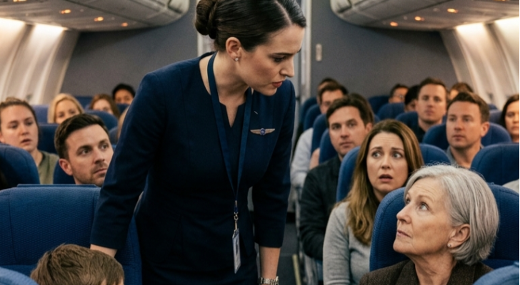 The attendant’s voice snapped through the cabin—cold, sharp, humiliating.