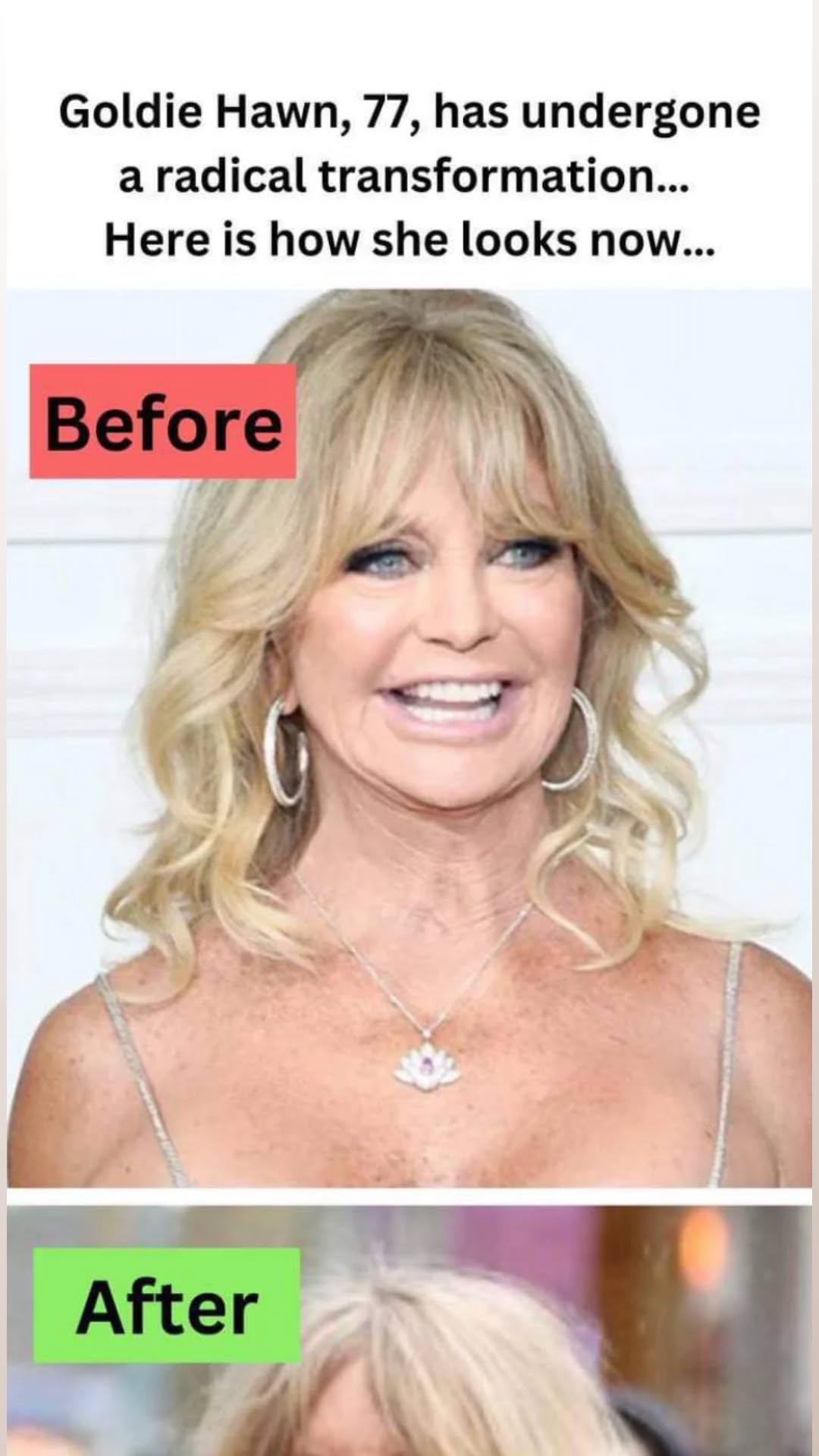 At 77, Goldie Hawn is still a Hollywood icon—her beauty, her laughter, and her legacy cannot be reduced to speculation about cosmetic procedures. For decades, she embodied natural grace, teaching fans to embrace wellness and positivity. And even now, as conversations swirl about her appearance, she remains a powerful reminder that aging is a personal journey.